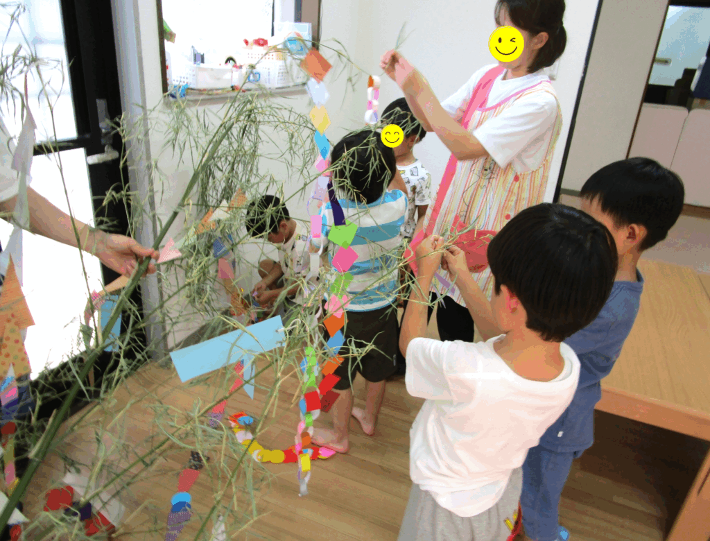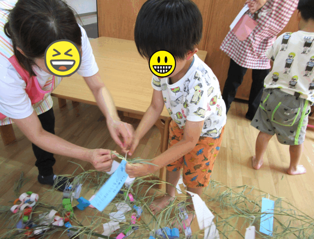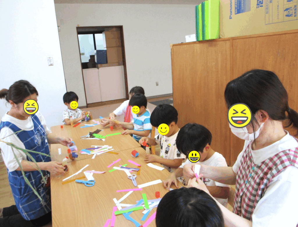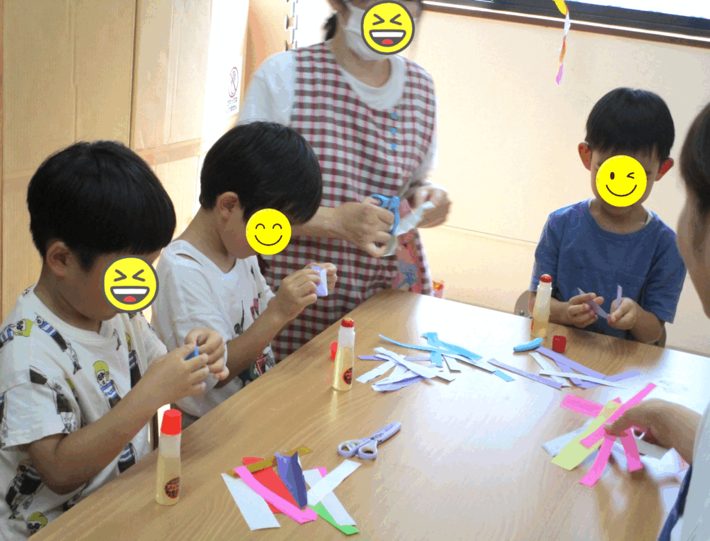 ということで、笹の葉に飾る飾りつけ製作をしました