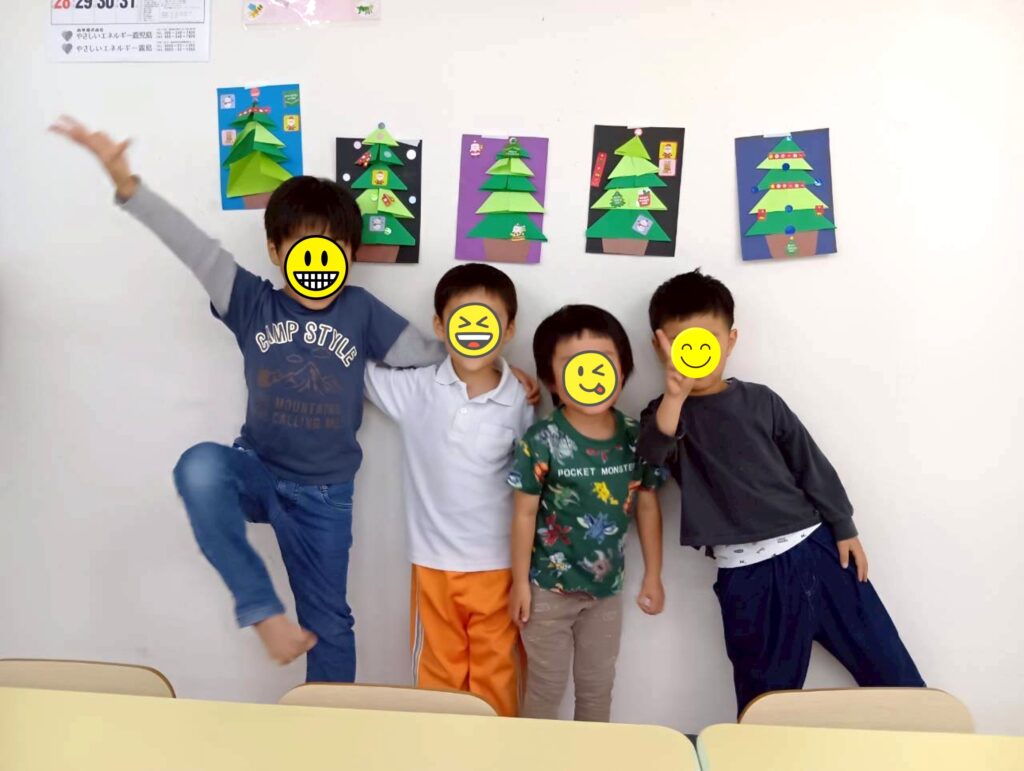 思い思いに制作したクリスマスツリーのようですね