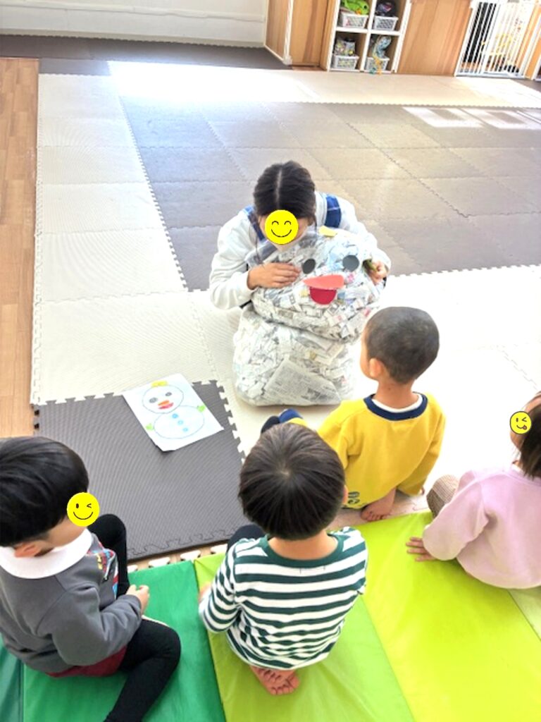 みんなに囲まれた雪だるまさん