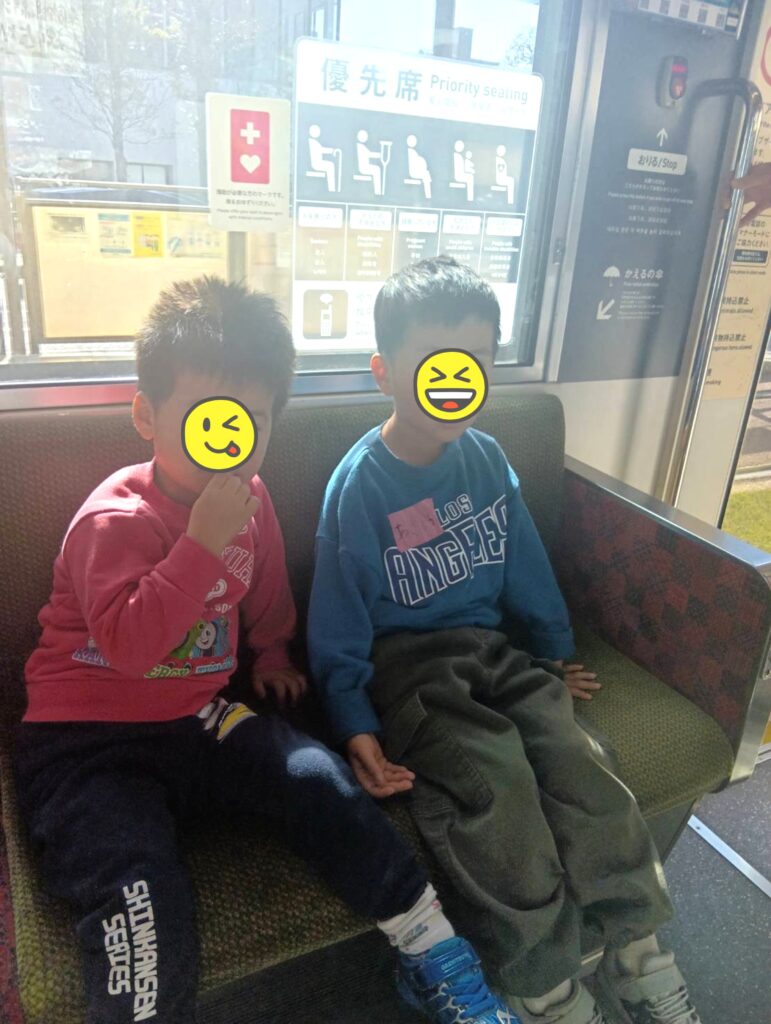 本日は、事業所合同で貸切電車を体験中