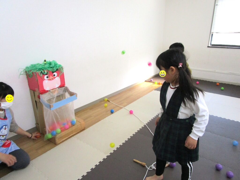 お豆の代わりにボールを使って、邪気を追い払いましょう